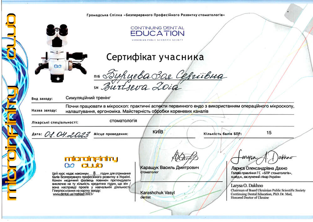 - Почни працювати з мікроскопом: практичні аспекти первинного ендо з використанням операційного мікроскопа, налаштування, ергономіка, майстерність обробки кореневих каналів