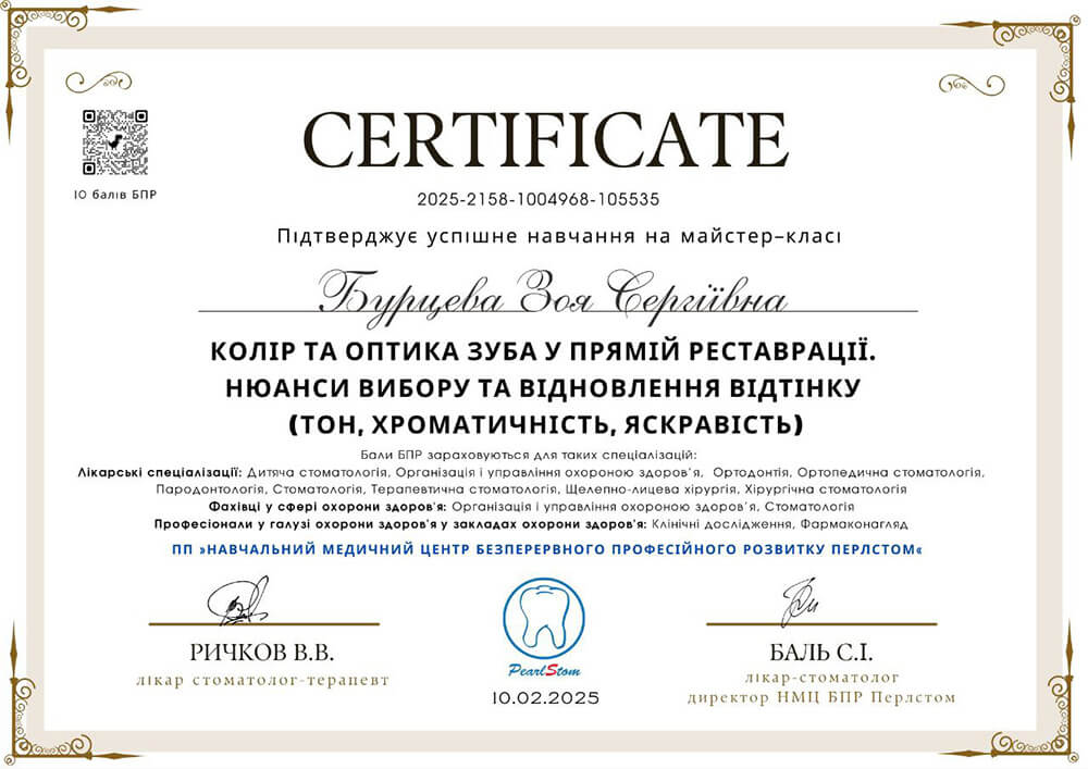 - Колір та оптика зуба у прямій реставрації: нюанси вибору та відновлення відтінку (тон, хроматичність, яскравість)